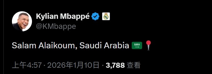 他来了!姆巴佩社媒确认抵达沙特,用阿拉伯语问好+手动定位